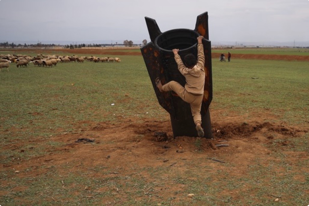 O fato de uma criança interagir com um míssil como se fosse um objeto comum, quase como um brinquedo, sugere como a guerra passa a fazer parte do ambiente cotidiano em regiões afetadas por conflitos, como na Síria.