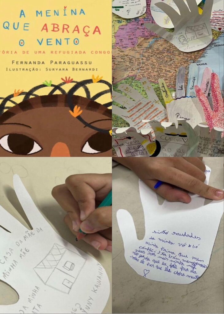 O livro A menina que abraça o vento – a história de uma refugiada congolesa (2017), escrito pela jornalista Fernanda Paraguassu, é uma das obras utilizadas em sala de aula pelas integrantes do Núcleo. Ao utilizar o material literário, as responsáveis do Projeto objetivam não só ensinar e sensibilizar esses alunos refugiados, como também promover identificação pessoal e o aprendizado – principalmente sobre resiliência e sobre a capacidade de lidar com a dor e a saudade.
